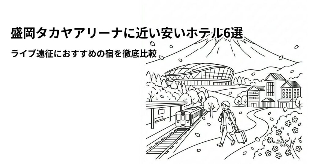 盛岡タカヤアリーナでのライブやコンサートが決まったら、次に気になるのが宿泊先ですよね。盛岡タカヤアリーナ(正式名称:盛岡市総合アリーナ)は岩手県盛岡市本宮にある最大約5,000人収容のアリーナで、JR盛岡駅から車で約10分の立地です。会場周辺には... -