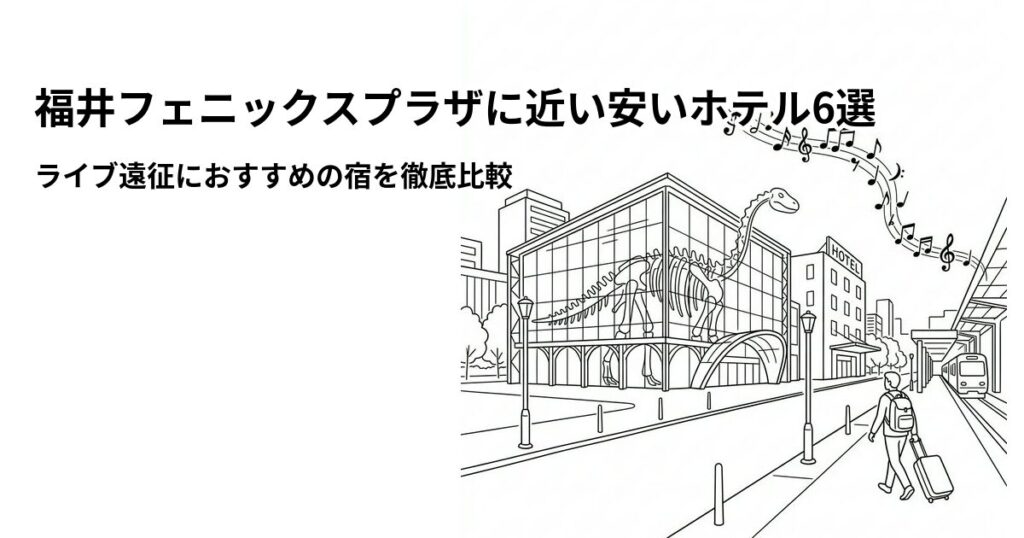 福井フェニックスプラザでのライブやコンサートが決まったら、次に考えたいのが宿泊先ですよね。福井フェニックスプラザ(正式名称:フェニックス・プラザ)は福井市田原1丁目にある最大約2,000人収容の多目的ホール。最寄り駅はえちぜん鉄道三国芦原線の... -