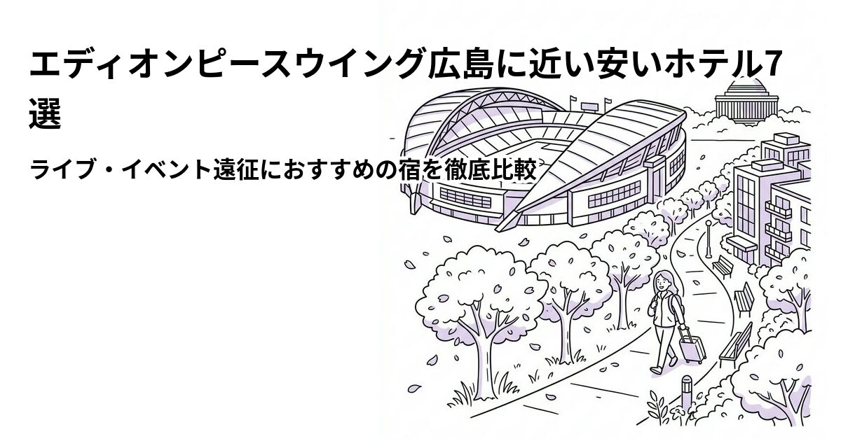 終演後・試合後は周辺道路やバス停が一気に混み合うため、スタジアムから徒歩で帰れるホテルに泊まるのが遠征の鉄則です。この記事では、楽天トラベルの料金・口コミデータをもとに「エディオンピースウイング広島に近い安いホテル7選」を徹底比較しました。