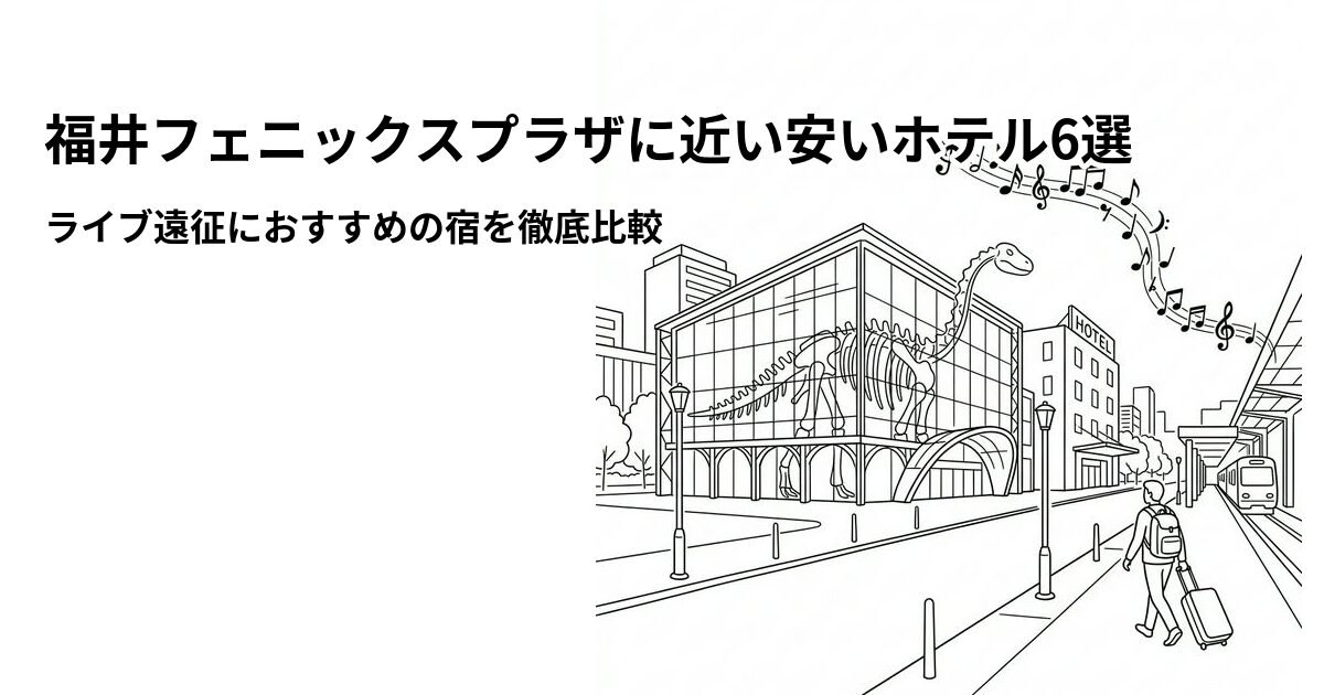 福井フェニックスプラザでのライブやコンサートが決まったら、次に考えたいのが宿泊先ですよね。福井フェニックスプラザ(正式名称:フェニックス・プラザ)は福井市田原1丁目にある最大約2,000人収容の多目的ホール。最寄り駅はえちぜん鉄道三国芦原線の田原町駅(徒歩約5分)で、JR福井駅からはバスで約10分・徒歩約20分の距離です。