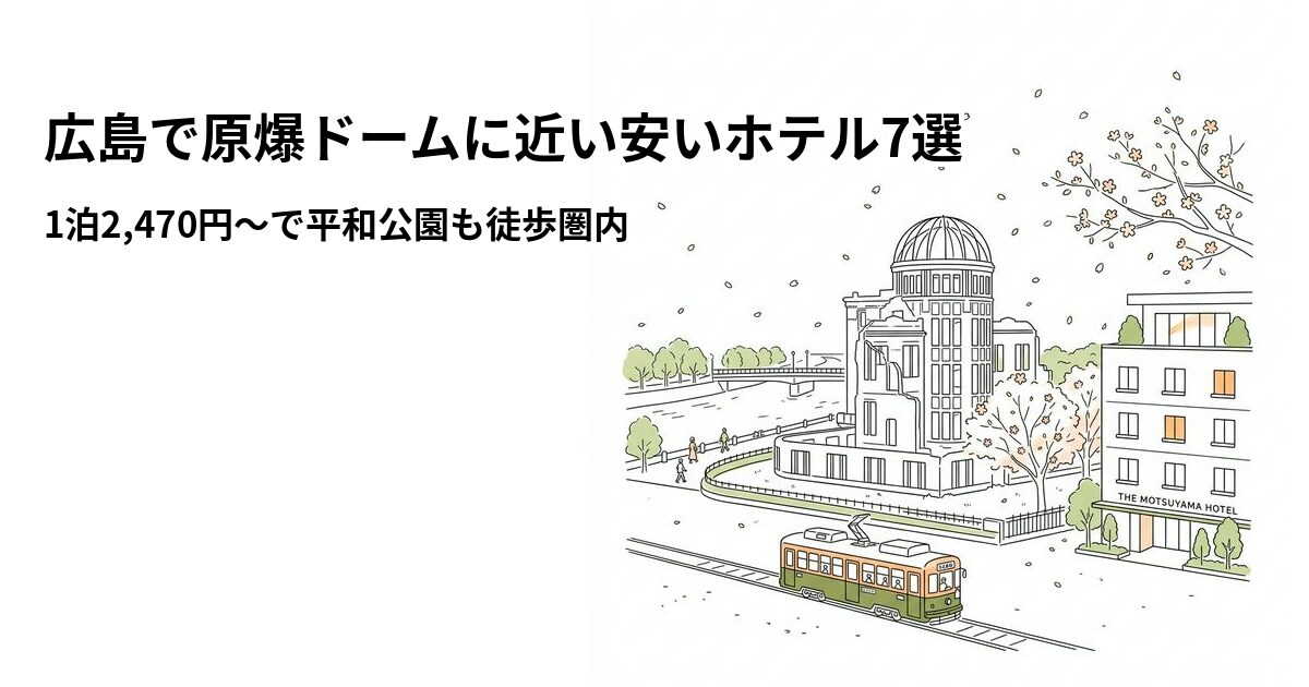 「広島の原爆ドームや平和記念資料館をゆっくり見学したいけど、ホテル代はなるべく抑えたい…」そんな悩みをお持ちではありませんか?広島市内中心部は意外とホテルの選択肢が多く、原爆ドームから徒歩圏内でも1泊2,000円台から泊まれる宿が見つかります。平和記念公園の周辺には路面電車の駅が複数あり、広島駅や宮島方面へのアクセスも良好。観光の拠点として最適なエリアです。この記事では、楽天トラベルの料金・口コミデータをもとに「原爆ドームに近くて安いホテル7選」を徹底比較しました。