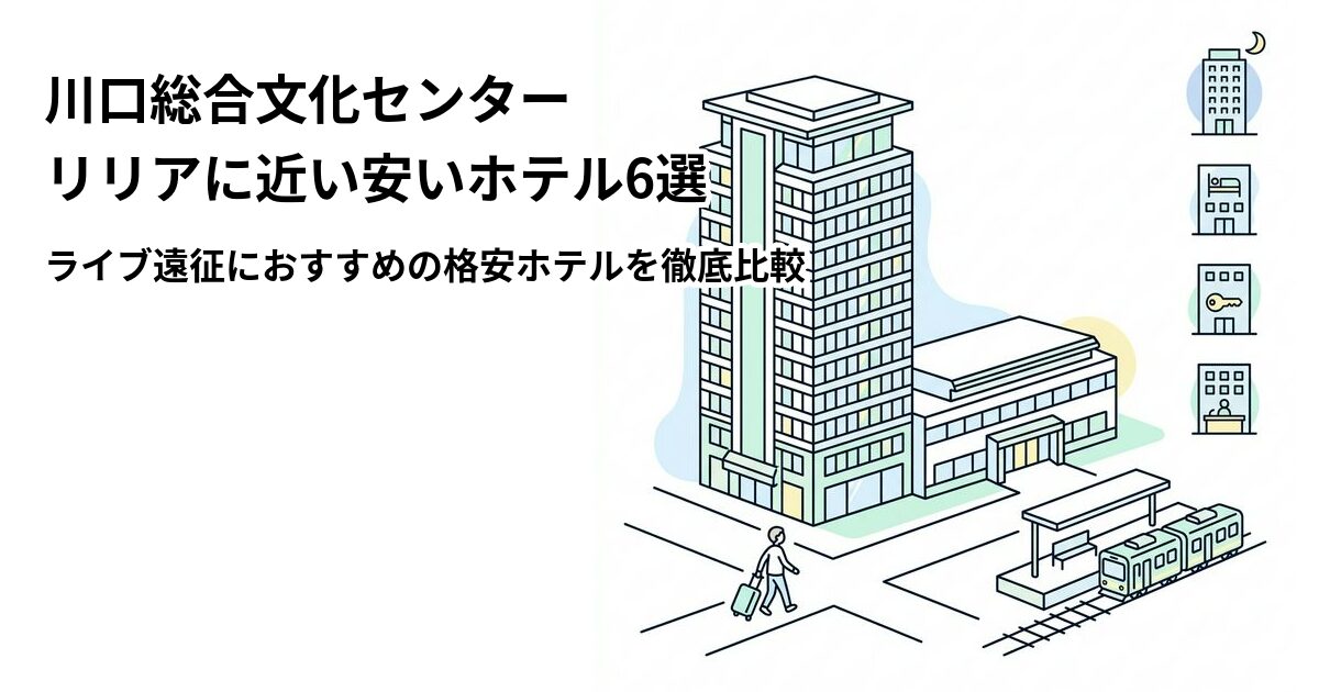 川口総合文化センター リリアでのライブやコンサートが決まったら、次に考えるのが宿泊先ですよね。リリアはJR京浜東北線・川口駅西口から徒歩約1分という抜群のアクセスで、メインホール(フカガワみらいホール)の収容人数は約2,000席。川口駅周辺にはビジネスホテルが複数あり、終演後に歩いてすぐホテルに戻れるのが大きな魅力です。