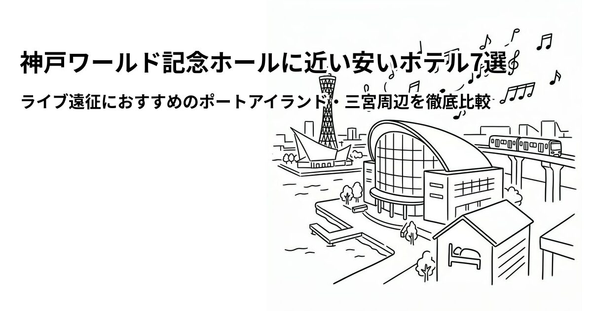 神戸ワールド記念ホールでのライブやコンサートが決まったら、次に考えるのが宿泊先ですよね。神戸ワールド記念ホール(正式名称:神戸ポートアイランドホール)は、ポートアイランド内に位置する最大約8,000人収容の多目的ホールです。最寄り駅はポートライナー「市民広場駅」で、駅から徒歩約3分という好アクセス。三宮駅からはポートライナーで約10分です。