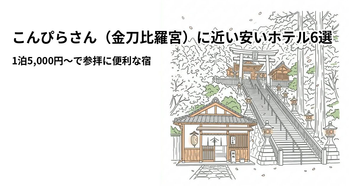 「こんぴらさんにお参りしたいけど、近くて安いホテルが見つからない…」と悩んでいませんか?金刀比羅宮は”こんぴらさん”の愛称で親しまれる香川県を代表する観光スポット。本宮まで785段、奥社まで1,368段の石段を登る参拝は体力勝負なので、近くのホテルに前泊・後泊できると安心です。実はJR琴平駅周辺には1泊5,000円〜で泊まれるコスパ抜群の宿が揃っています。この記事では、楽天トラベルの料金・口コミデータをもとに「こんぴらさんに近い安いホテル6選」を徹底比較しました。