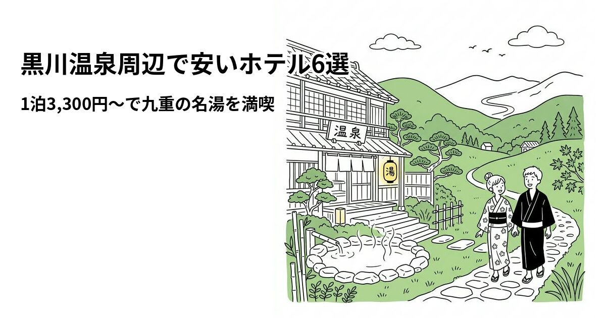 「黒川温泉に行きたいけど、有名温泉地だから宿泊費が高そう…」と悩んでいませんか?熊本県南小国町を中心に広がる黒川温泉は、風情ある湯めぐりが楽しめる人気温泉地です。実は周辺の筋湯温泉・九重高原エリアまで視野を広げれば、1泊3,300円〜で泊まれる宿も。黒川温泉の湯めぐりを楽しみつつ、宿泊費はしっかり抑える——そんな賢い旅行プランが実現できます。この記事では、楽天トラベルの料金・口コミデータをもとに「黒川温泉周辺で安いホテル6選」を徹底比較しました。