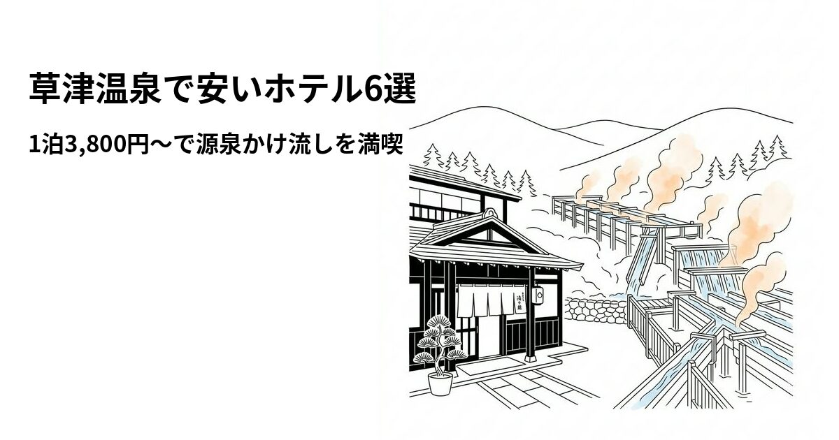 「草津温泉に行きたいけど、宿泊費が高くて…」と悩んでいませんか?日本三名泉のひとつ・草津温泉は、自然湧出量日本一を誇る名湯です。湯畑を中心に温泉街が広がり、無料の共同浴場も多数あるため、宿泊費を抑えても温泉を存分に楽しめるのが魅力。実は1泊3,800円〜で泊まれる宿もあり、探し方次第でぐっとお得に旅行できます。この記事では、楽天トラベルの料金・口コミデータをもとに「草津温泉で安いホテル6選」を徹底比較しました。