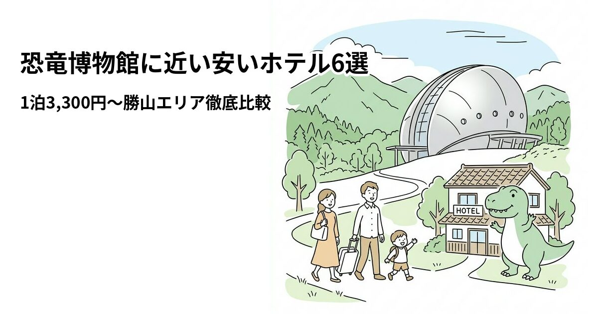 「福井県立恐竜博物館に行きたいけど、近くに安く泊まれるホテルはあるの?」と悩んでいませんか?恐竜博物館は福井県勝山市の山あいにあり、最寄りのえちぜん鉄道・勝山駅から車で約15分。博物館の滞在時間は2〜3時間が目安ですが、2023年のリニューアルで展示が大幅に拡充され、丸一日楽しめるスケールになりました。せっかくなら勝山市内に泊まって、翌日は近くのかつやま恐竜の森やスキージャム勝山も楽しみたいところ。この記事では、恐竜博物館から車で10〜20分圏内の勝山エリアで、1泊3,300円〜泊まれる安いホテル6選を楽天トラベルの料金・口コミデータをもとに徹底比較しました。
