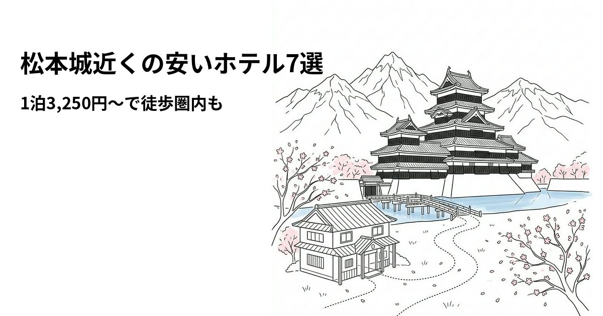 「松本城を観光したいけど、周辺のホテルって高いのでは…」と心配していませんか?実は松本城の周辺には1泊3,250円〜で泊まれるホテルがたくさんあります。松本城は国宝5城のひとつで、現存する五重六階の天守としては日本最古。北アルプスを背景にした美しい姿は一年を通じて多くの観光客を惹きつけています。JR松本駅から松本城までは徒歩約15分。駅周辺にはリーズナブルなビジネスホテルが集中しており、観光の拠点として非常に便利です。この記事では、楽天トラベルの料金・口コミデータをもとに「松本城に近くて安いホテル7選」を徹底比較しました。