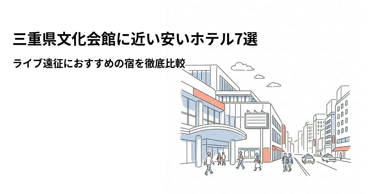 三重県文化会館でのライブやコンサートが決まったら、次に考えるのが宿泊先ですよね。三重県文化会館は三重県総合文化センターの中にある県立劇場で、大ホールの収容人数は約1,903人。最寄り駅はJR・近鉄の「津駅」で、駅からバスで約5分(徒歩では約25分)の立地です。津駅周辺にはビジネスホテルやリーズナブルな旅館が集中しており、終演後にバスやタクシーでサッとホテルに戻れます。