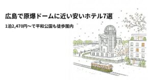 無料駐車場55台を完備し、チェックアウト日の正午まで利用可能。口コミでは「部屋も綺麗で朝食はバイキングで品数も多く満足」「12時までホテルの駐車場も使用できるので宮島観光を楽しめた」と、コスパの良さが繰り返し評価されています。朝フェリーで宮島に渡り、厳島神社と水族館をたっぷり観光して夕方に戻るという使い方にぴったり。予算を抑えつつ水族館観光を楽しみたい方やマイカー旅行の方に最適な選択肢です。