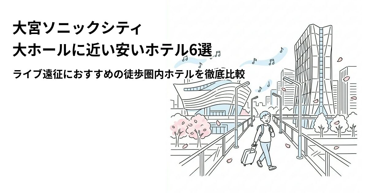 会場から徒歩圏内のホテルなら、混雑を避けてゆっくり余韻に浸れますよ。この記事では、楽天トラベルの料金・口コミデータをもとに「大宮ソニックシティ 大ホールに近い安いホテル6選」を徹底比較しました。