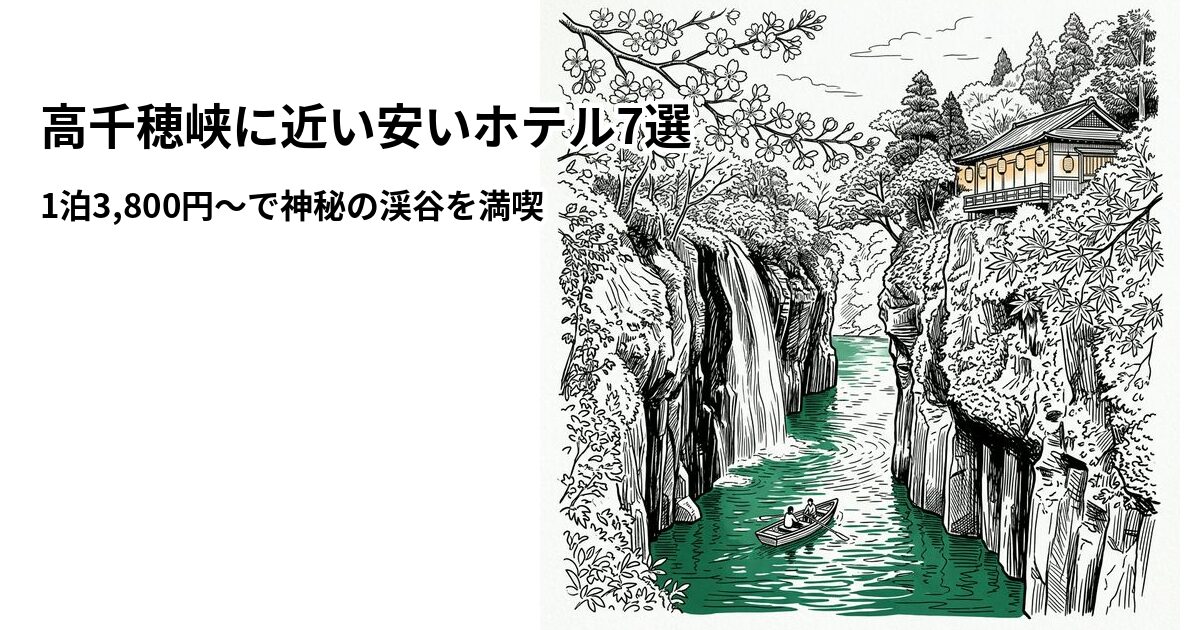 「高千穂峡に行きたいけど、周辺のホテルって高いんじゃ…」と思っていませんか?宮崎県の高千穂峡は、国の名勝・天然記念物に指定された絶景スポット。真名井の滝やボート遊覧で有名ですが、実は1泊3,800円〜で泊まれる宿があり、高千穂峡まで徒歩圏内の宿も複数あります。この記事では、楽天トラベルの料金・口コミデータをもとに「高千穂峡に近い安いホテル7選」を徹底比較しました。